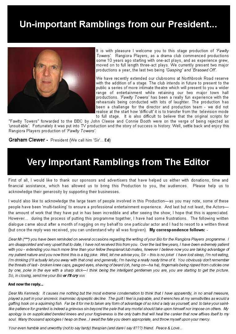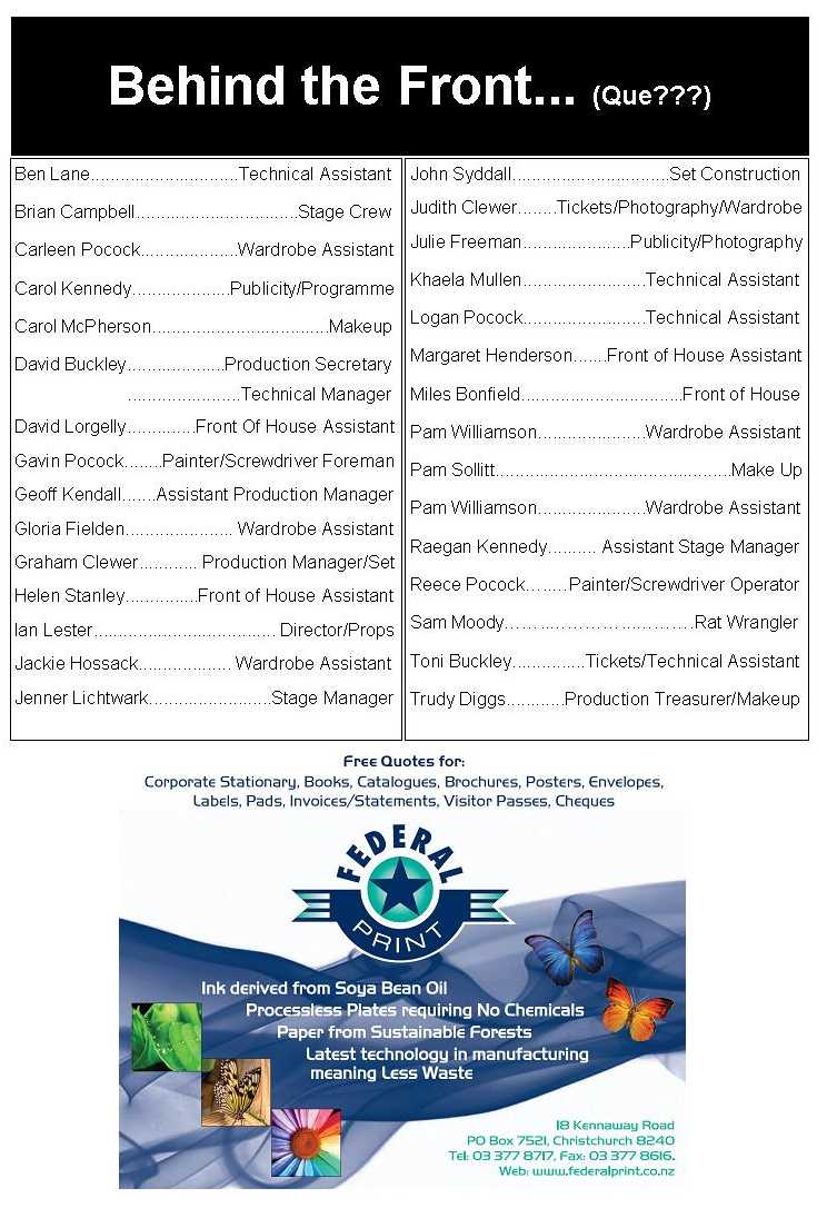 Comments to the Rangiora Players or The Webmaster are always welcomed, please use