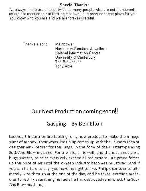 Comments to the Rangiora Players or The Webmaster are always welcomed, please use